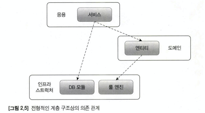 계층 구조는 상위 계층에서 하위 계층으로만 의존하고, 역으로는 발생하지 않는다.