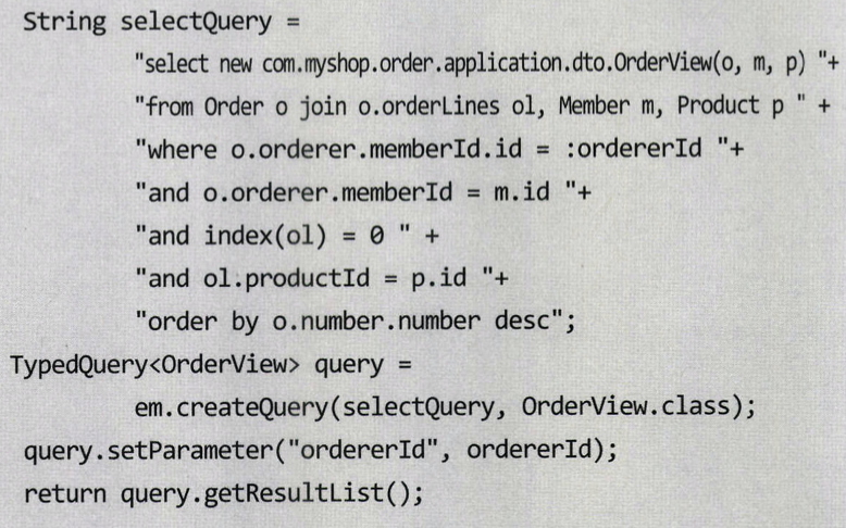 - 여러 애그리거트를 조합해서 한 화면에 보여주는 데이터 제공