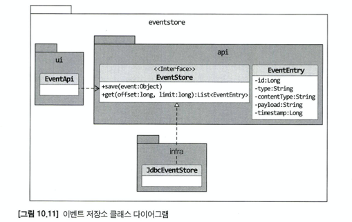 EventStore : 이벤트를 저장하고 조회하는 인터페이스 제공